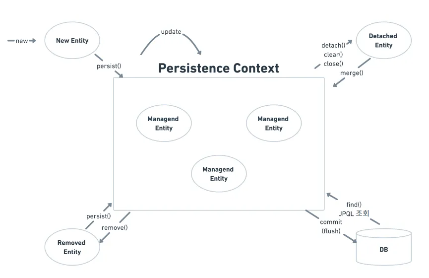 - JPA(Java Persistence API)에서 영속성 컨텍스트는 엔티티(Entity)를 관리하는 공간