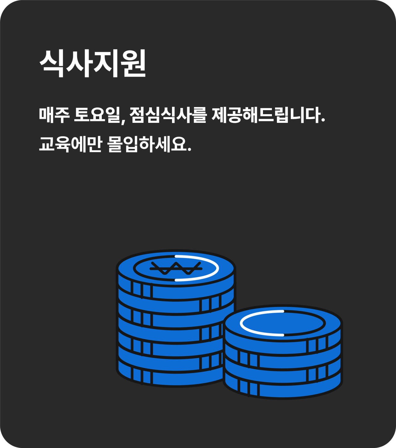 자기개발도 힘이 있어야 합니다. 여러분이 학습에 온전히 집중 할 수 있도록 식사를 제공해드립니다.